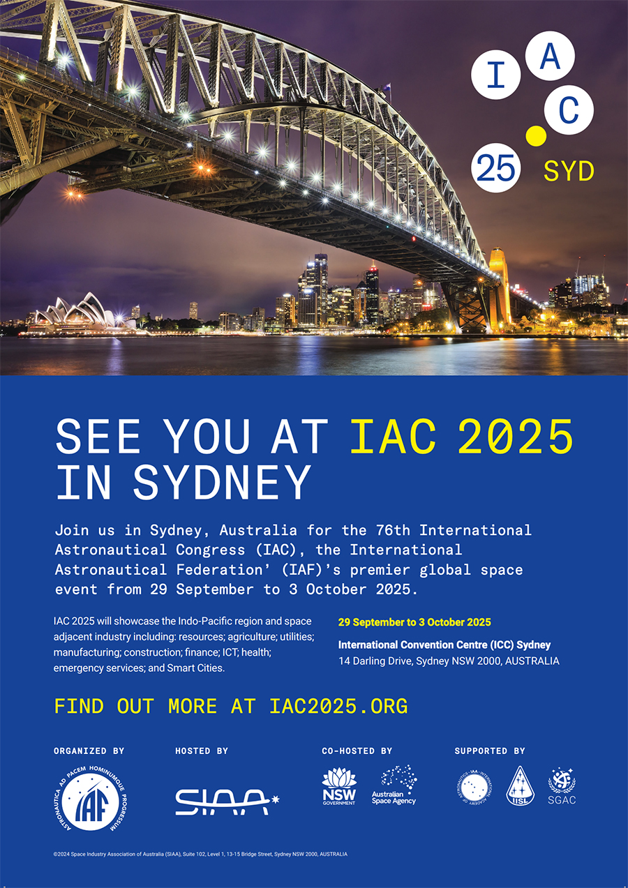 IAC 2025 in Sydney, Australia is hosted by Space Industry Association of Australia (SIAA) and co-hosted by Australian Space Agency and NSW Government.